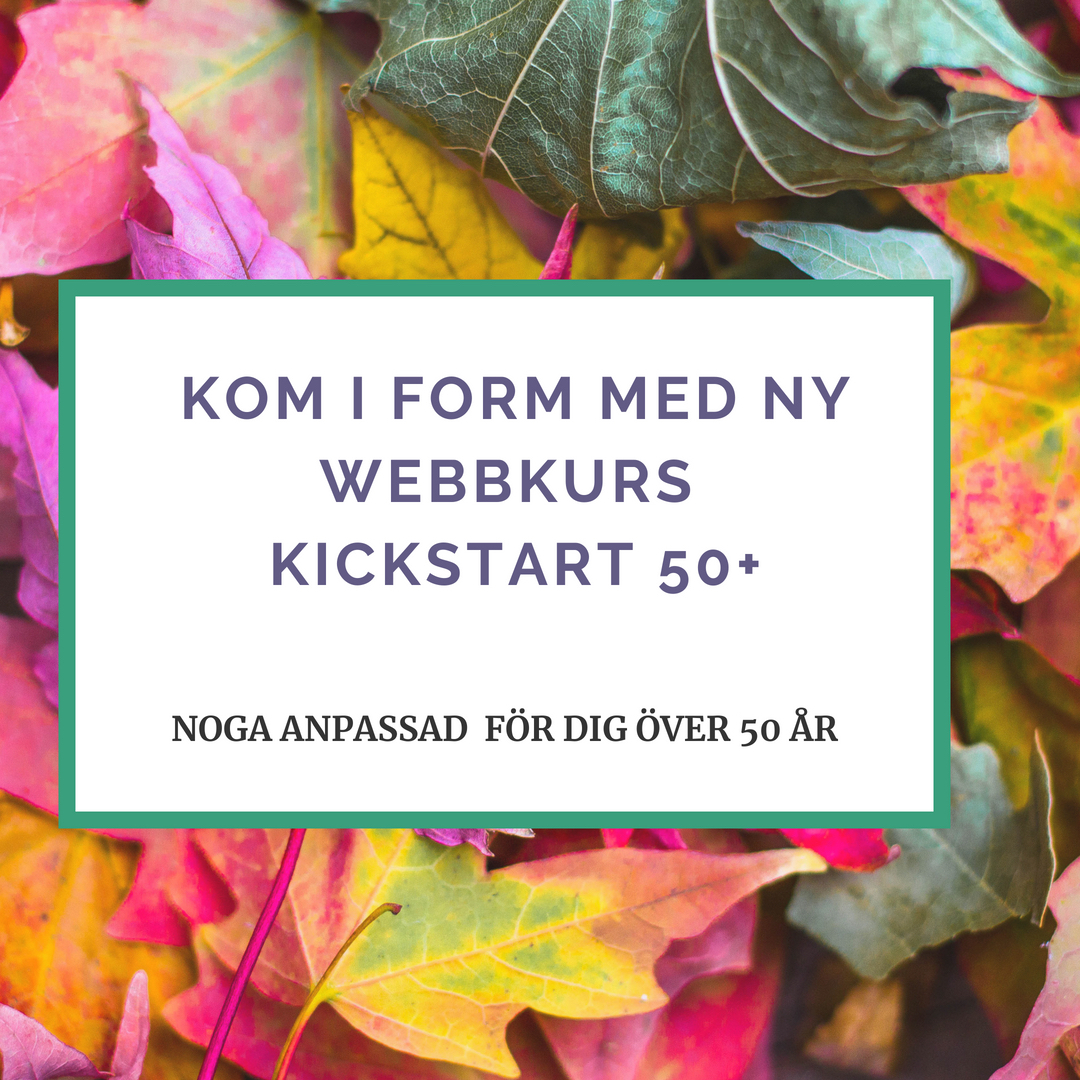 4 veckors kickstart. 4 veckors total guidning på Facebook med veckoprogram, recept och träningsprogram för dig 50 +. Du får coachning varje dag, tips och inspiration och möjlighet att hitta nya vänner! Vi tränar, äter och har roligt. Vi delar upplevelsen och stöttar varandra så att du kan uppnå ditt bästa resultat. Alla recept och all träning är noga anpassade för att ge dig 50 + en hälsosam viktminskning.